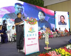 Honourable Education Minister, Thiru Anbil Mahesh Poyyamozhi address the gathering through a video where he appreciated the AMPS team to have organized such a knowledge sharing event. This kind of an Expo will bring educationalist, parents and students together where they understand how education is more important for the growth of technology, he mentioned a famous quote by Alexander De Croo “Every industrial revolution brings along a learning revolution”. When we see the growth of technology by the education system, parents and the students should not be pressurized by the steady growth. As our Honourable CM, Thiru MK Stalin says students should be focused only on studies with out any distractions. We will always strive to make Tamil Nadu the top state for education and support the education system.