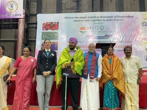Chennai, India — On March 9, 2025, Mother India Crochet Queens (MICQ) set an extraordinary milestone by securing their 6th Guinness World Record for the Largest display of crochet squares. This record-breaking showcase, which featured 100,581 crochet squares, was unveiled at SRM University in Kattankulathur, Chennai, and covered an area the size of a football field.