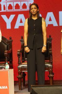 Ms.Harmanpreet addressed the electrifying student crowd in “Sathyabama Indoor Stadium” , shared her experiences of Winning world cup as a team, the journey behind success of her team in world cup campaign, importance of “hardwork” before and “humility”after achieving success.